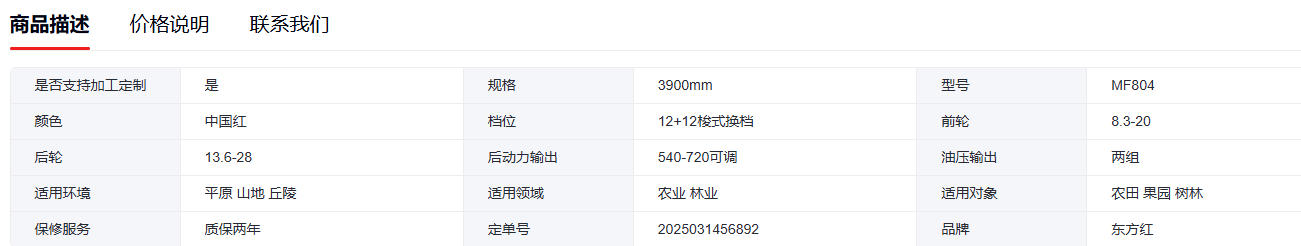東方紅LY1204四輪拖拉機 農業通用旋耕機 水旱兩用 1臺