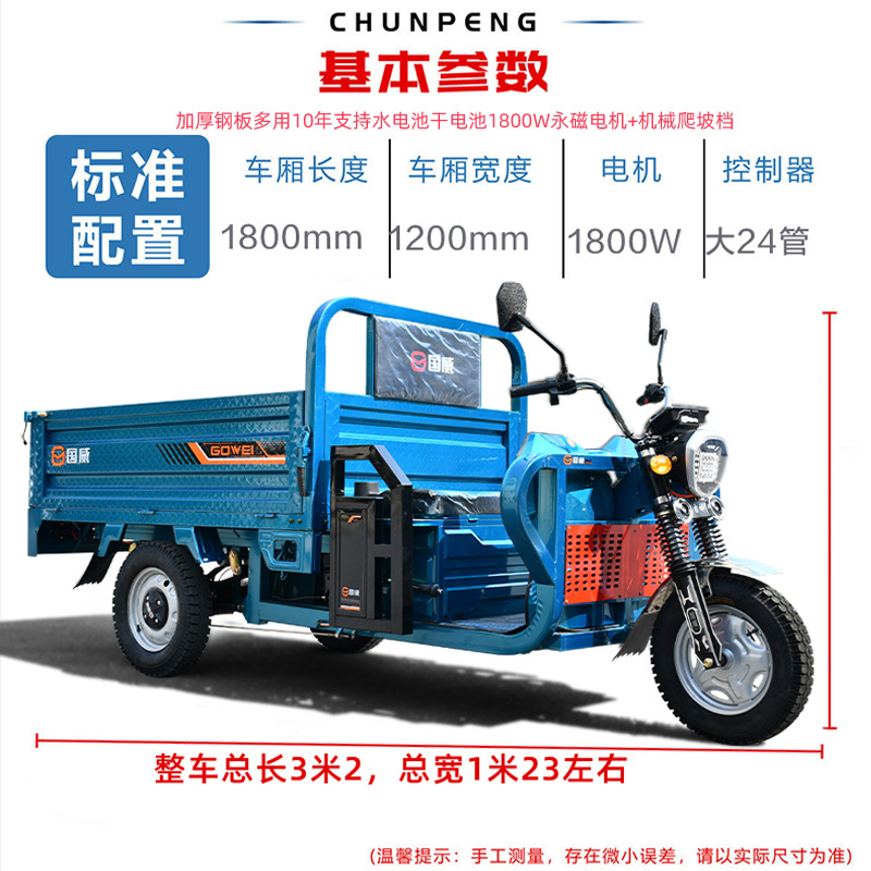 國(guó)威電動(dòng)三輪車新款貨運(yùn)大型農(nóng)用電動(dòng)車載貨大功率翻斗電瓶車爬坡 1輛