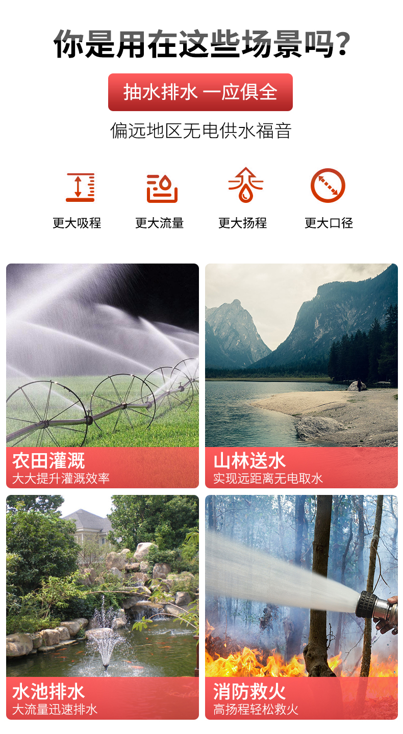 3、主要用于農田排灌,農場的給、排水;也可以用于建筑工地,遂道,小型水庫,家庭水池的給、排水!