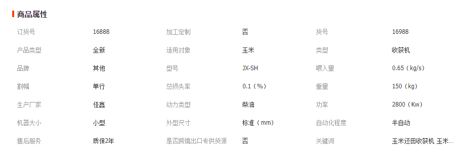 2:功能齊全,摘穗裝箱秸稈粉碎還田等,幾乎和大型玉米收獲機相同的功能。