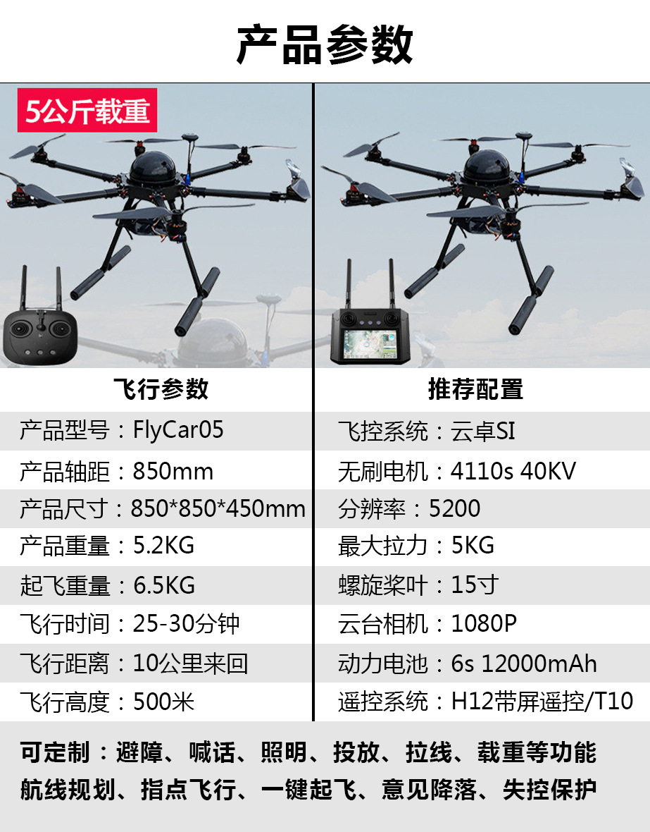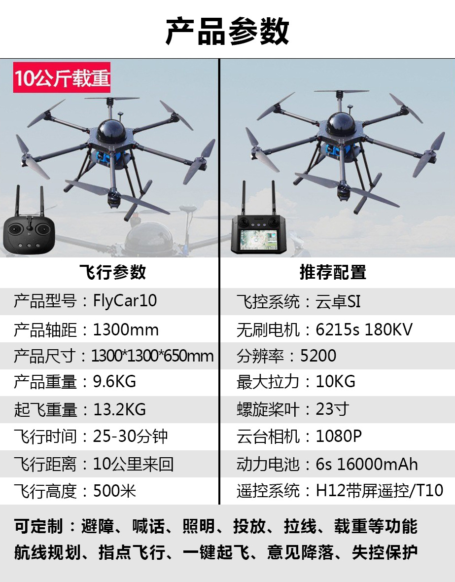 載重運輸無人機長續(xù)航智能返航遠程投放智能控制全自動運載無人機
