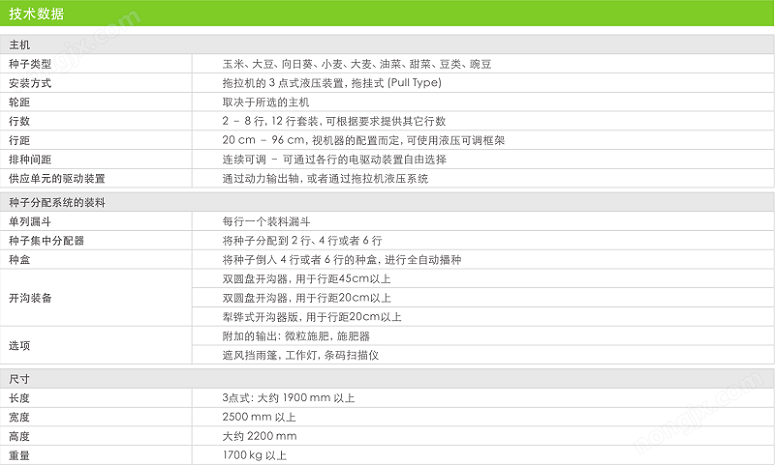 - 3點式牽引框架,用于2到6行的播 - 用于 4到 8 行的拖掛式框架 - 用于多作物應用的可調框架 -