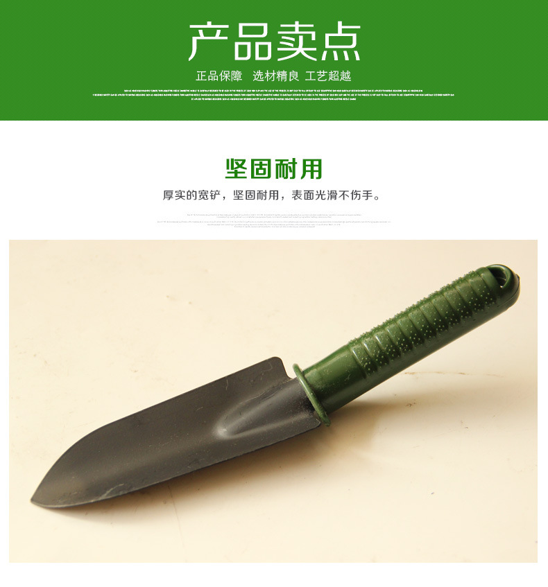 詳細信息 材質塑料把柄,鐵頭 貨號0002 是否進口否 類型鏟子 品牌春暉園林 適用場景園林園藝種植 規(guī)格綠柄四件套,綠柄三件套,軍綠大三件套 是否跨境出口專供貨源否 作用挖掘 主體材質鐵 是否可折疊否