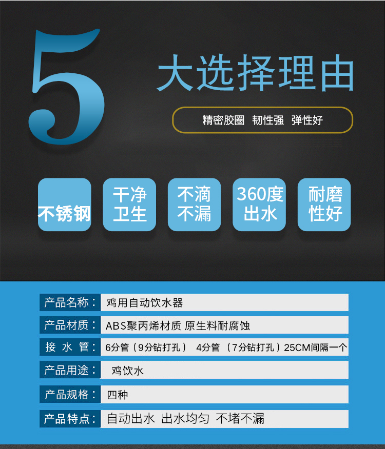 詳細信息 商品屬性 訂貨號211 加工定制是 貨號2221 適用對象雞,鵝,鴨 用途飲水設備 品牌清源 型號飲水器 外型尺寸標準 包裝說明全新 控溫范圍常溫 類型飲水器 產品類型全新 售后服務質保兩年 產品規格6分白鋼球卡子,6分彎臂鋼球一體吊杯,6分直臂鋼球一體吊杯,紅頭 是否跨境出口專供貨源否
