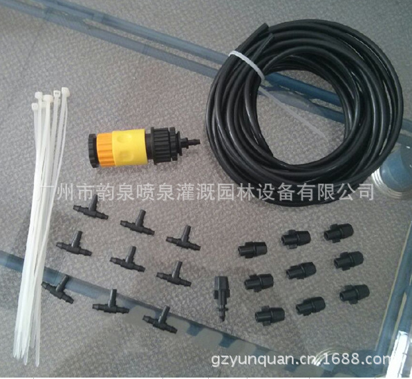 包含10個噴頭,5米微噴管道,快速接頭1個,奶嘴1個,4分*6分轉接頭1個,4分的倒扣接頭1個