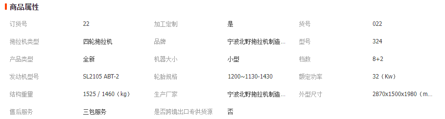 北拖324輪式拖拉機產品介紹
