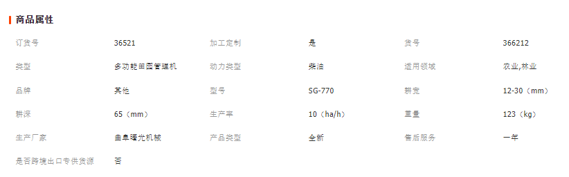 機器根據配置不同,又可以實現旋耕、起壟等功能,體積小、重量輕,適合多種地形環境作業,一機多用,是目前小型農機產品。 適用作物:大蔥、大姜、土豆、甘蔗、花卉、辣椒等作物的開溝、培土、起壟作業,以及大棚、山地、丘陵作業。 本機型有三大特點: 特點之一是經濟、高效、實用。 特點之二是體積小、重量輕、操作靈活、安全方便,特別適合在大棚、水田、果園、葡萄園、梯田、坡地以及小塊地中使用。 特點之三功能多,本機可在只更換作業刀具的情況下完成、扶壟、開溝、培土等多種農田作業,是農民朋友發家致富的得力助手。