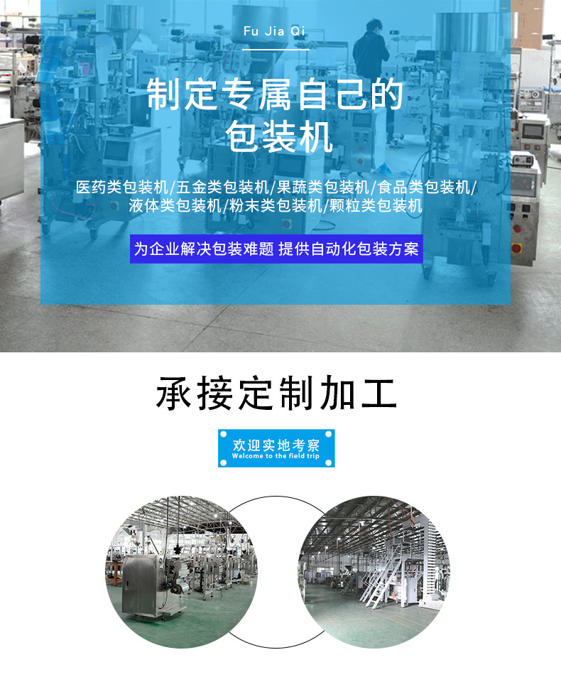 詳細信息 加工定制是 功能包裝容器成型,打碼、噴碼,灌裝,封口,充填,殺菌、干燥,打包,清洗,計量 品牌富佳麒 型號FJQ-LB420 電壓220(V) 功率2.2(Kw) 包裝膜寬420(mm) 制成袋尺寸(L)80~300*(w)60~220(mm) 包裝速度5~60(袋/分鐘) 重量650(kg) 外形尺寸(L)1217*(W)1015*(H)1343(mm) 包裝材料復合材料 包裝類型袋 自動化程度全自動 適用對象小型顆粒