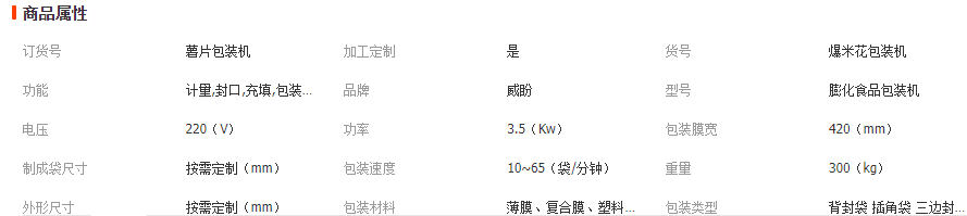 威盼全自動膨化食品包裝機,針對物料易碎的特點,專門在下料裝置做了振動設計,使物料在輸送過程不因跌落而變得破碎。機器適用于包裝薯片、薯條、蝦條、麻花、鍋巴、糖果、餅干、堅果等散裝零食類產品。也可以根據客戶的需求,配置充氮裝置和抽真空裝置。