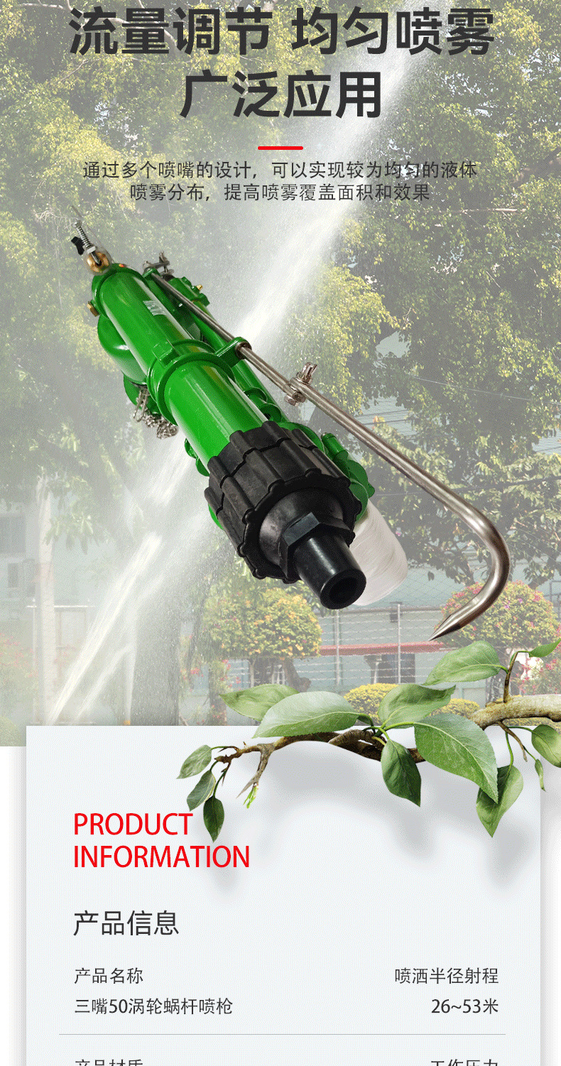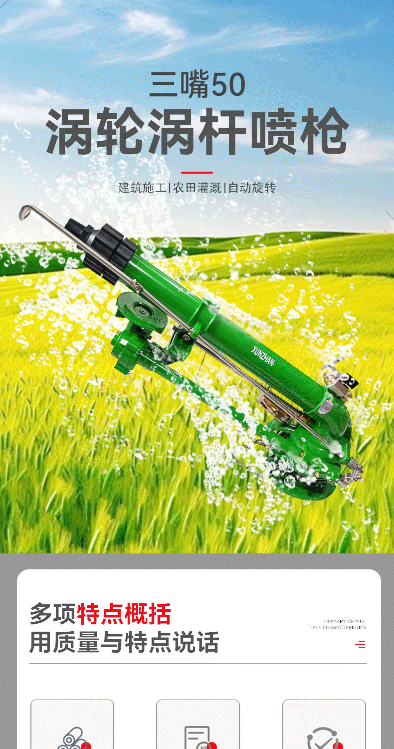 三嘴50渦輪蝸桿噴槍仰角可調高霧化噴槍360自動旋轉農田除塵灌溉