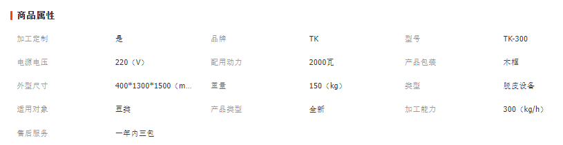 1。配套動(dòng)力:1.5千瓦 0。55千瓦 電機(jī)各一臺2。磨盤直徑; 300毫米3。脫皮率:95%4。仁殼分離率;95% 5。臺時(shí)產(chǎn)量:約300KG6。凈重:150KG 7。體積:400*1300*1500