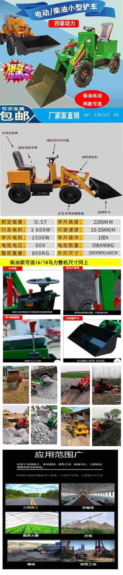 小型電動四輪裝載機柴油型農用養殖場清糞鏟車工地電瓶四驅小鏟車