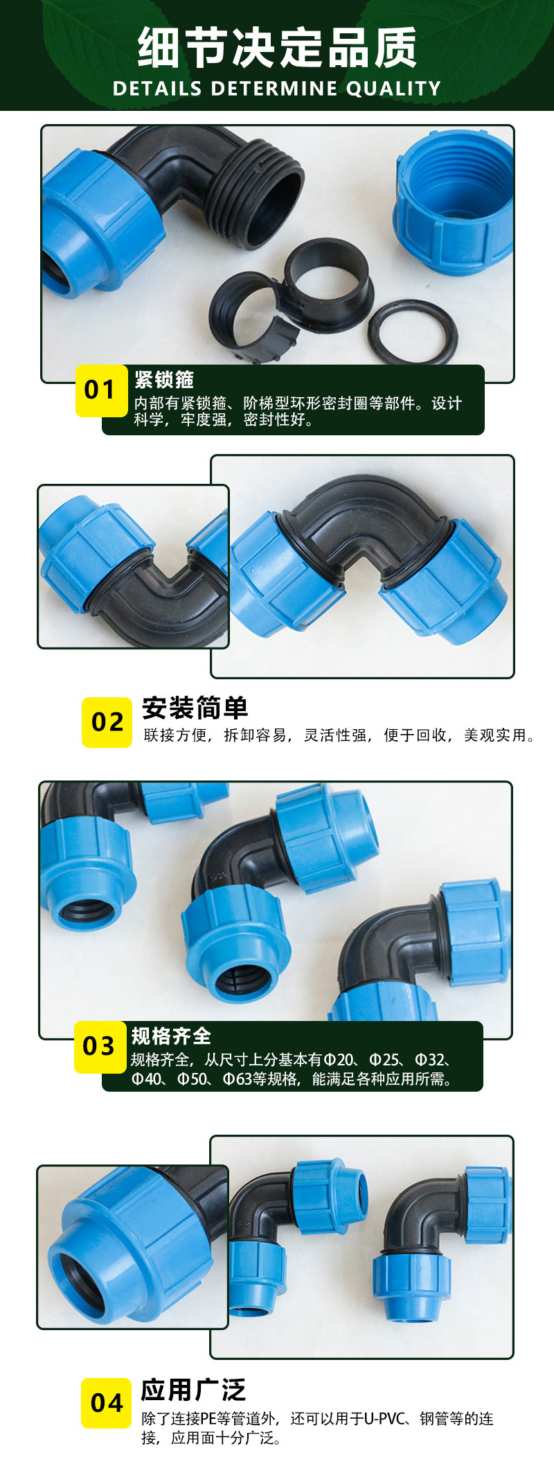 PE管快接外連管件鎖緊彎頭 節水灌溉快接彎頭大棚農業灌溉微噴滴