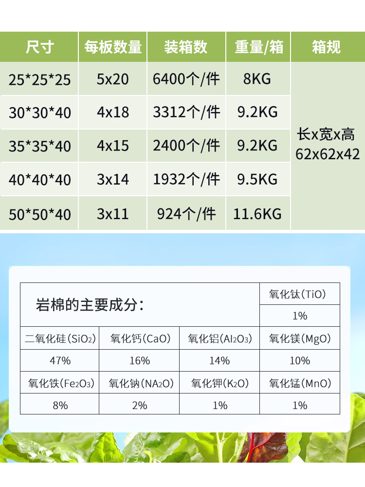 農(nóng)業(yè)巖棉無(wú)土栽培水培營(yíng)養(yǎng)種植高效透氣提高發(fā)芽率保水透氣育苗塊