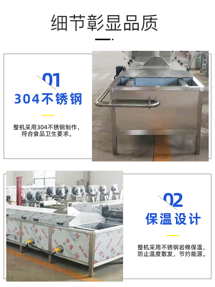 巴氏殺菌線分殺菌和冷卻兩部分,通過鏈條的不斷運轉,帶動被殺菌物進入槽內連續作業,適用于醬菜、低溫肉制品、果汁、果凍及各類料的自動化連續巴氏殺菌,也可用于蔬菜的漂燙處理。二、產品特點:本機以熱水為介質,分殺菌槽、冷卻槽兩部分。可整體采用不銹鋼制作,無極變頻調速、噪音低、運行平穩,可根據包裝物的要求對溫度和時間進行任意調整