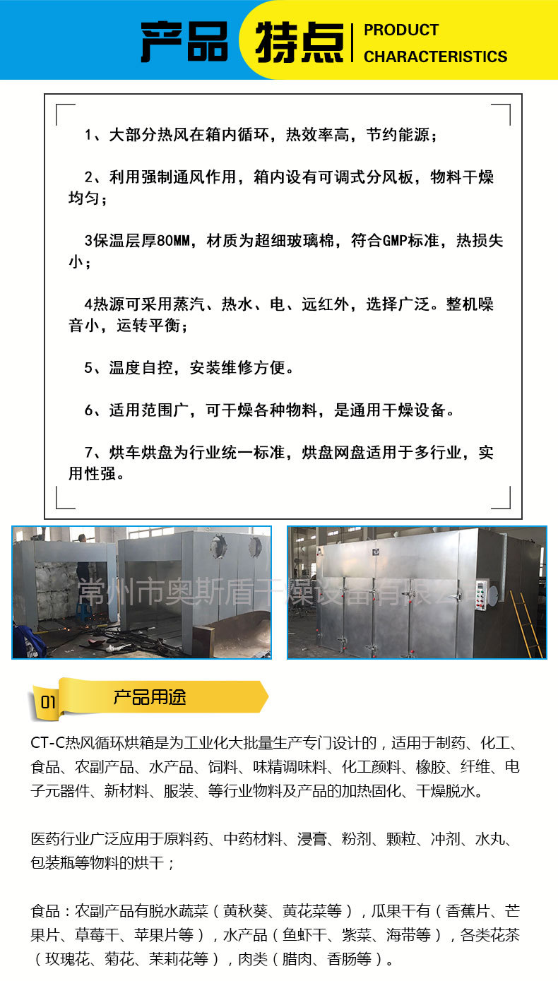 詳細信息 商品屬性 訂貨號熱風循環(huán)烘箱 加工定制是 貨號AL-639381833487 品牌奧斯盾干燥 型號咨詢 操作方式間歇式 適用物料多種可用 應用領域食品 化工 農產品 傳熱面積15(m2) 轉速0(r/min) 功率12-60(kw) 外形尺寸2.45*1.3*2.4(m) 占地面積3(m2) 重量780(kg) 規(guī)格CT-I,CT-II,CT-III,CT-IV,CT-C-O,定制專拍 是否跨境出口專供貨源否