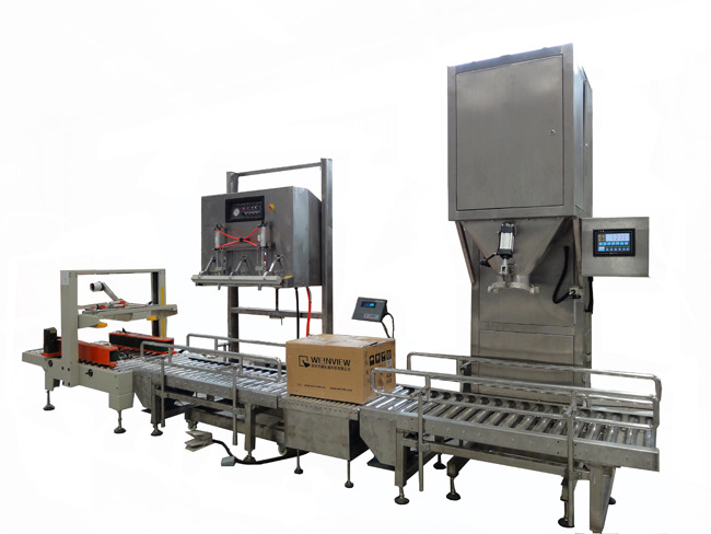 WYD-K系列顆粒包裝機是機電一體化的高新技術產品,適用于糧食、飼料、肥料、化工等行業中顆粒狀、片狀松散物料的自動計量,通常應用于包裝規定在5~50kg的半自動包裝線。使用塑料編制袋,人工套袋,自動夾袋、計量、充填、落袋、輸送,人工輔助入縫合工位自動縫口,完成半自動包裝過程。