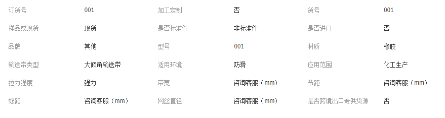 主營產品或服務: 輸送帶; 滾筒; 清掃器; 托輥; 傳輸帶; 輸送帶廠; 耐熱輸送帶; 輸...
