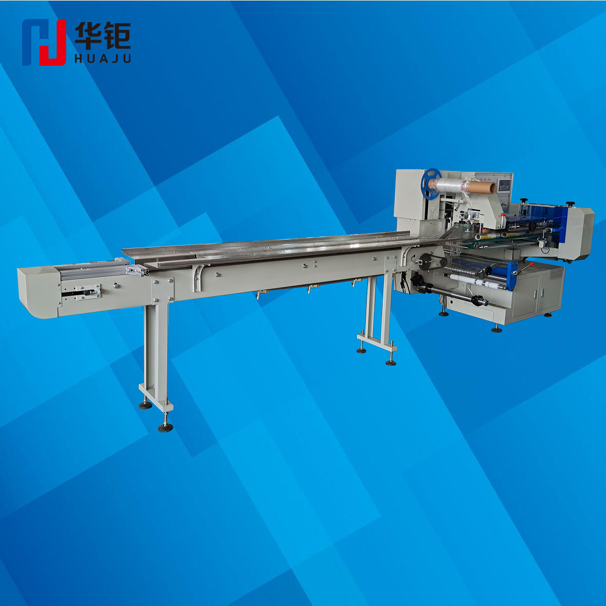 枕式熱縮膜包裝機通常都要配合熱收縮包裝機使用;前道在枕式機輸送平臺上,可以