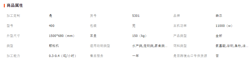 產品名稱 | 型號 | 配用動力(千瓦) | 效率(公斤/小時) |
