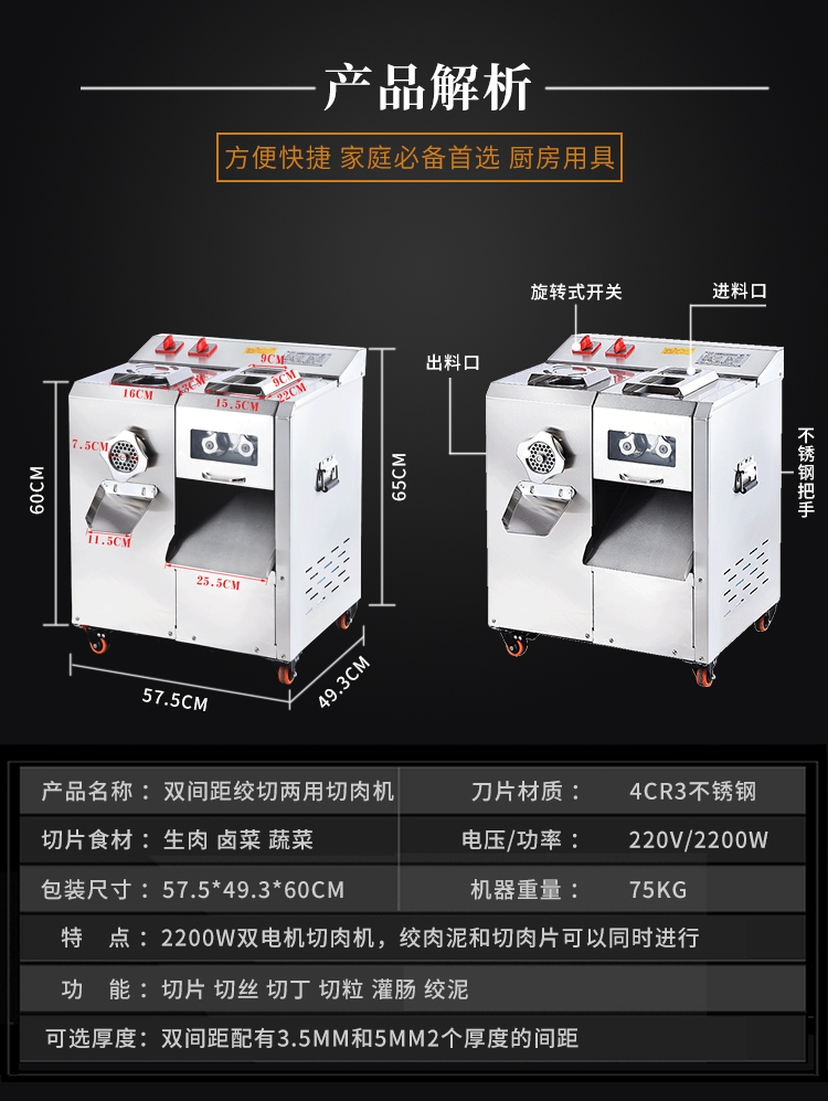 魚生切片機商用電動多功能薄片切絲豬耳朵家用切肉小型