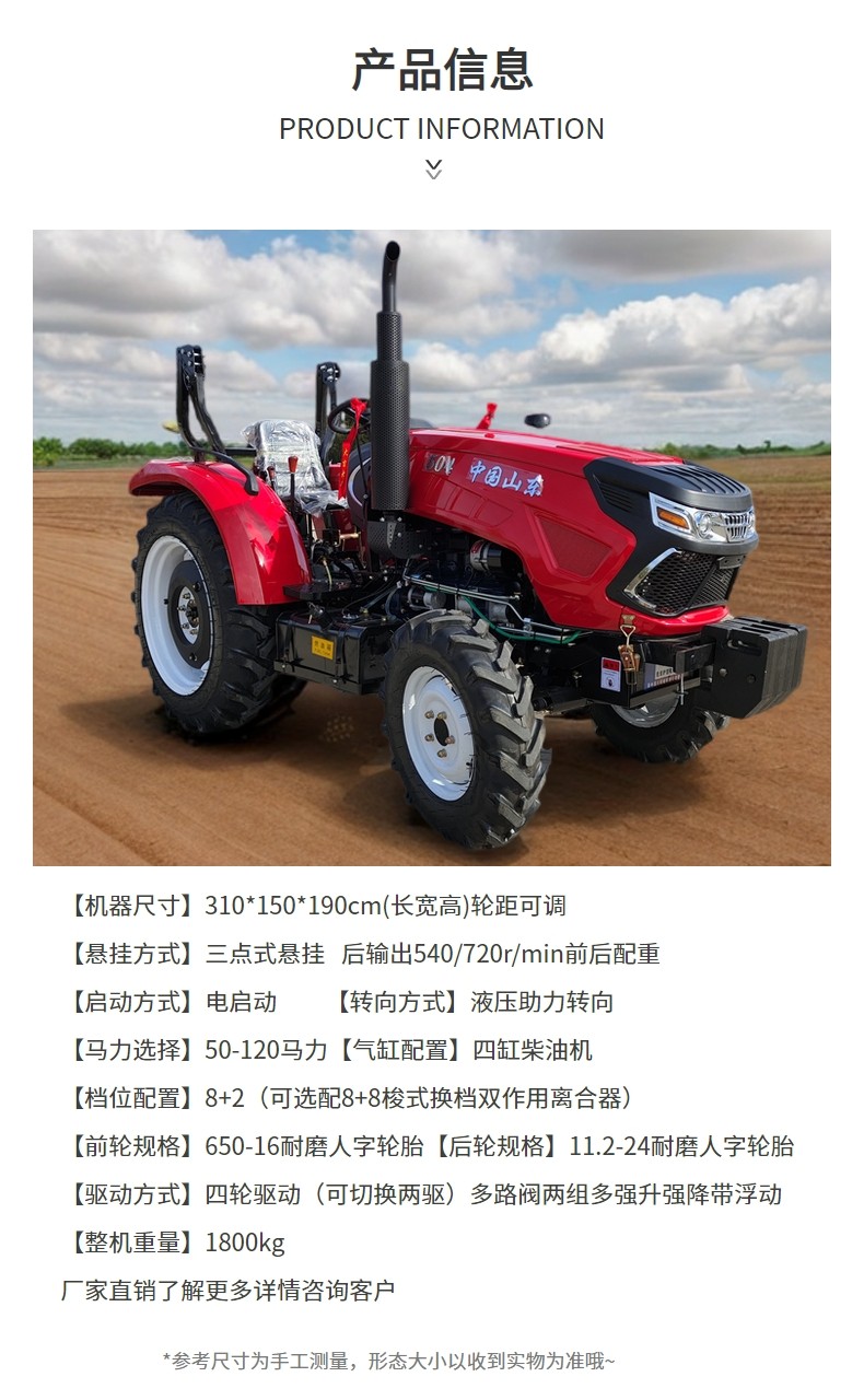 大馬力四驅輪式拖拉機 柴油動力大棚王