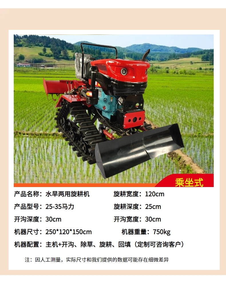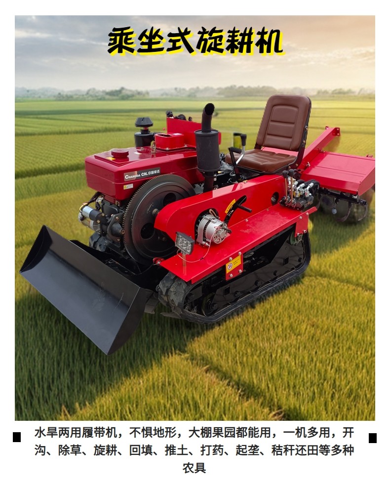 履帶式小型旋耕機 乘坐式水田旱地兩用耕地機 一機多用