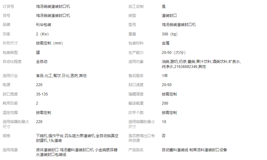 主營: 封口機械 灌裝機械 多功能包裝機
