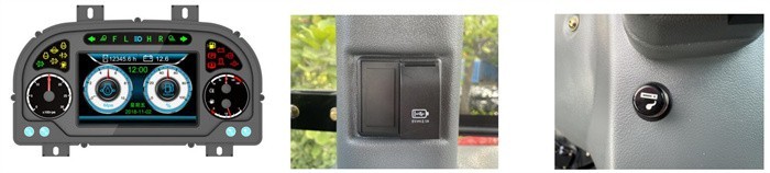 6.駕駛室基配空調、副座、天窗等,駕乘環境舒適;裝配LED工作燈,亮度高、壽命長;智能七吋液晶彩屏組合儀表、顯示內容多、可靠性高;具備人機交互功能,方便用戶對整車進行維修;可實現保養提醒;集成后視影像功能,實時觀察后置機具作業情況,更加方便實用。右側四聯翹板開關設計,USB充電器接口,2.1A大電流,滿足手機等移動設備的應急充電;終端滿足農機“三合一”補貼要求,具備“OTA”自動升級功能,補貼無憂。配備點煙器接口,可用作小功率電子設備的充電口;中央控制盒,集中控制,質量可靠,維修簡單。