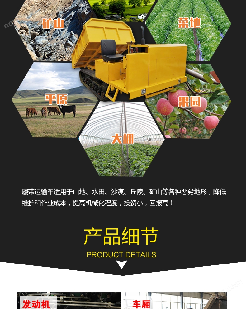 履帶運(yùn)輸車(chē)作業(yè)系統(tǒng)裝置的維護(hù)要點(diǎn):履帶運(yùn)輸車(chē)山林拉木材用爬山車(chē)四不像拖拉機(jī)