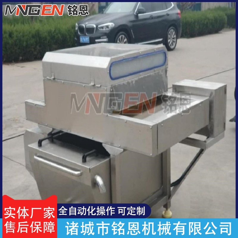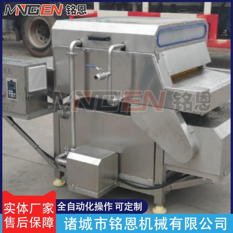 毛輥粽葉清洗機是結合毛輥清洗機和噴淋清洗機的特點和功能研發制作加工的,適應于條狀葉類產品如粽葉等的清洗,設備采用毛刷摩擦原理,在毛刷高速旋轉的同時,頂部的高壓水噴淋頭不斷的沖洗物料,在毛輥轉動推送下,清洗出來的物料干凈無污,漂亮有光澤。