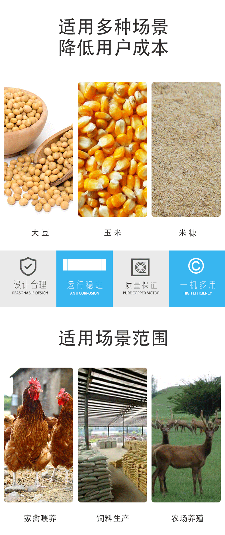 適用對象兔,牛,雞,羊,馬,鵝,驢,鴨,鵪鶉,豬,鴿,騾