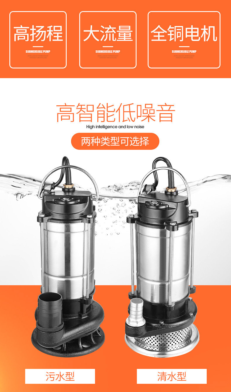 首頁 > 供應產品 > 潛水泵220v污水泵家用直流小型高揚程抽水機農用灌溉排污不銹鋼
