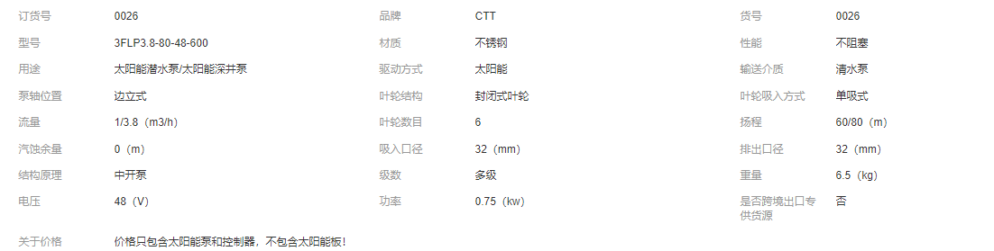 太陽(yáng)能光伏水泵 24V48V高揚(yáng)程太陽(yáng)能深井泵無(wú)刷直流太陽(yáng)能潛水泵