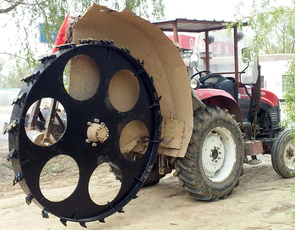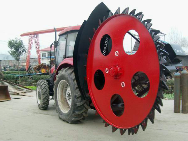 圓盤式開溝機(jī)是開挖溝渠一次成形的重要施工機(jī)械。其主要由動(dòng)力系統(tǒng)、減速系統(tǒng)、鏈條傳動(dòng)系統(tǒng)和分土系統(tǒng)組成。柴油機(jī)經(jīng)過皮帶將轉(zhuǎn)動(dòng)傳遞到離合器后,驅(qū)動(dòng)行走變速箱、傳動(dòng)軸、后橋等來實(shí)現(xiàn)鏈條式開溝機(jī)的向前或向后的直線運(yùn)動(dòng)。開溝機(jī)用于建筑工程中開挖窄而深的地下溝槽埋設(shè)地下排水管道、或鐵道、郵電、城建等部門用于埋設(shè)電纜與管道等,也可用于果園、蔬菜園以及其它農(nóng)田環(huán)境開溝施肥、排水、灌溉。