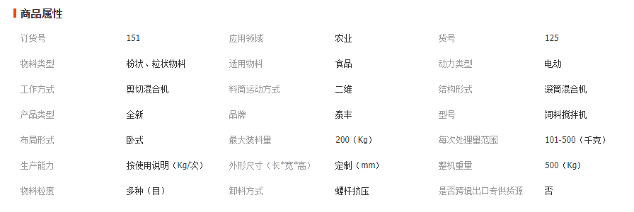 全日糧飼料混合機性能特點: