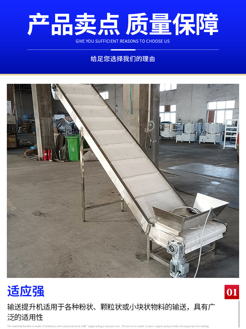供應(yīng)不銹鋼輸送提升機食品物料上料輸送設(shè)備用爬坡式流水線輸送機