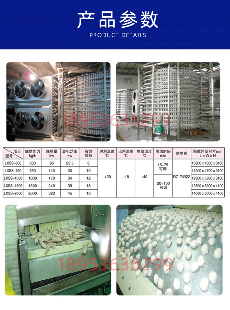 海鮮多層螺旋速凍塔設備 黃花魚螺旋單體食品速凍裝置 螺旋速凍機