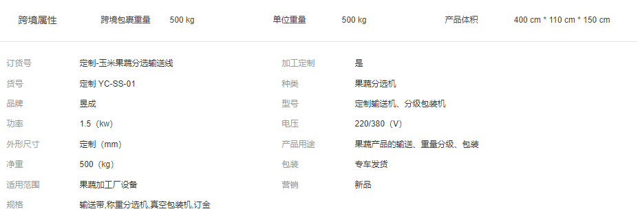 鮮食玉米重量分級輸送包裝 鮮食玉米加工生產線 自動選果機