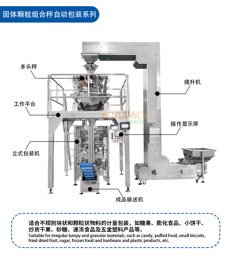 適用于五谷雜糧、堅果干果、糖果餅干、干貨炒貨、油炸膨化食品、冷凍食品等