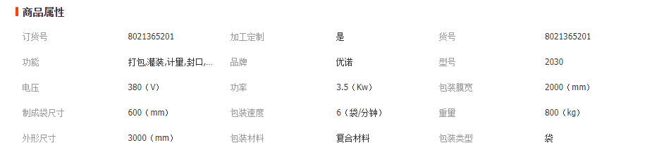 定量包裝機技術參數