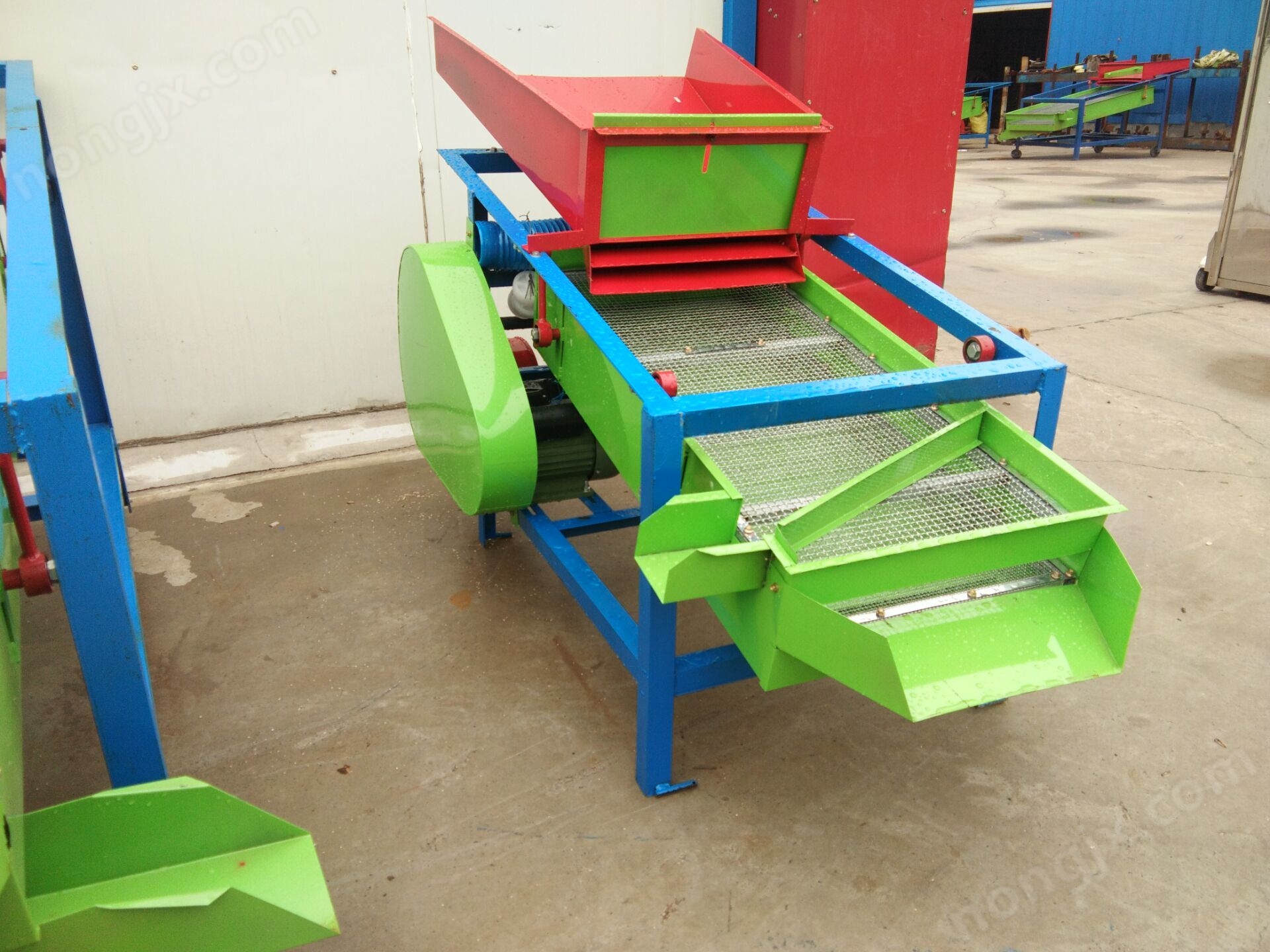 中小型的的安裝及調試:水平面的調整清糧機需放在比較平整的地面上工作,清糧機支架位置設有地平調整螺栓,水平螺栓調節以設備穩定為佳!風量的調節設備主力風機兩側有調節風量大小的滑動插板,當糧食清選不凈時,可向上適量調節,以加大風機的進風量!除雜倉zui前端有兩個調節大小雜的出料方向,前端螺栓zui松時,大小雜全部進入主清雜倉內,相反輕微打雜會從前端排出,小雜從除雜倉排出!