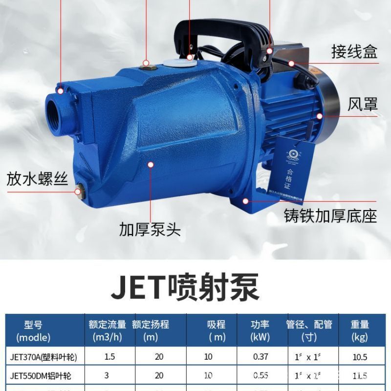 噴射泵家用自來水增壓泵大頭泵耐腐蝕大流量高效高揚程220v自吸泵
