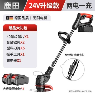 配件清單:說明書.適配器.割草片5條.圓刀片1片,凌型刀片2個,可伸縮鋁管.擋草坂.主機.板手.