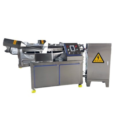 我公司生產的斬拌機完全采用不銹鋼作原料,結構大方美觀、易清洗,達到國家儀器衛生標準工藝 、設計合理,能確保肉制品的斬切細度,發熱小,斬切時間短,提高產品的彈性和出品率。高速斬拌機是肉制品生產工藝中的關鍵設備,高速旋轉的斬拌刀可把原料肉斬拌成細膩的糜狀,同時可以把其它輔料攪拌均勻。