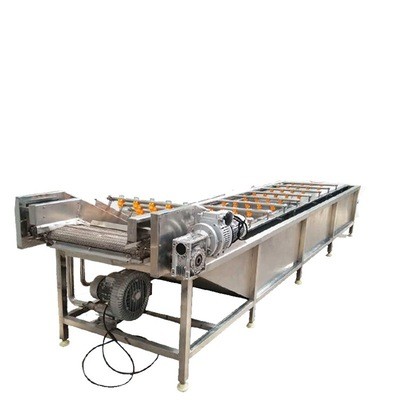 蔬菜清洗線 葉類、根莖類蔬菜清洗去雜機由不銹鋼的材料制造,具有高壓風機,高壓水沖擊,達到蔬菜浸泡、清洗、脫鹽的效果。可根據產量大小定制,設備采用好的不銹鋼材料,符合衛生標準,設備設有氣泡發生裝置,是物料呈翻滾狀態,去除泥沙灰塵以及表面農殘功效。設備全部不銹鋼制造,是清清洗食品的專用設備。