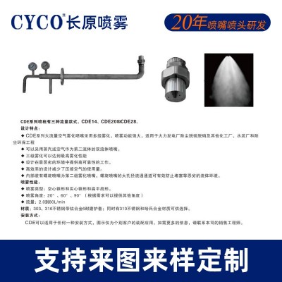 1、CDE系列噴槍上的噴嘴使用大流量的空氣霧化型噴嘴,擁有多級(jí)霧化效果,在火力發(fā)電廠除塵脫硫脫硝,化工廠、水泥廠和除塵環(huán)保工程都有廣泛應(yīng)用;