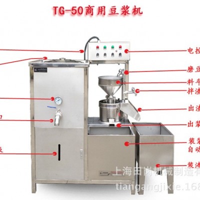 該機采用全不銹鋼結構,衛生級設計,具有磨豆脫渣一次完成,自動加熱煮漿、操作簡便、快速、安全可靠、清潔衛生、外型美觀等優點。采用常壓蒸汽加熱煮漿避免豆漿出現焦糊味,從50L豆漿煮到沸點,只須30分鐘左右,方便快捷:從磨漿到豆腐成品一次完成,一臺設備只需一人操作。 可 生產豆漿、豆腐腦、豆花等。