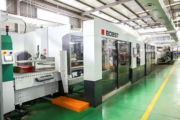 ![]() | 公司擁有從德國引進的先進瓦楞紙板生產(chǎn)流水線和從法國引進的五色柔印制箱聯(lián)動線,使生產(chǎn)自動化控制得到全面、有效的提高。德國BHS卓越之星五層瓦楞紙板生產(chǎn)線,設計最高時速300米/分,年產(chǎn)能可達1億平方米。該流水線采用了國際最先進的生產(chǎn)工藝,智能化程度極高,配備QDM,能夠記憶和調(diào)取訂單生產(chǎn)資料,確保穩(wěn)定運行;同時瓦楞輥采用卡夾安裝以及周邊加熱方式,調(diào)換瓦楞輥最快15分鐘,大大提高換瓦楞效率。法國BOBST(博斯特)FFG 8.20全自動紙箱聯(lián)動線,生產(chǎn)速度可達24000個紙箱/小時,只需3人就能輕松操作機器,是國內(nèi)首條該型號紙箱聯(lián)動生產(chǎn)線。整條線具有快速設置功能,只需1~2分鐘即可完成換單,能超高效生產(chǎn)規(guī)則開槽箱,具有SOC功能(前單完成后單自動到位)、五色印刷、自動印刷糾錯等功能。 |