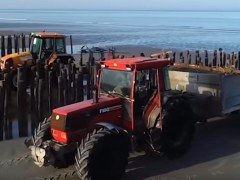 不可思議的“貽貝收割機”,機器套在木樁上,直接將貽貝刮下來
